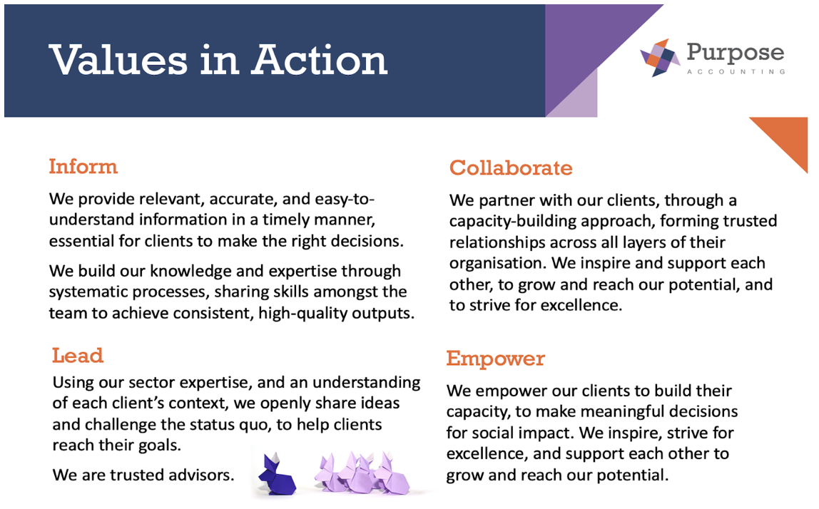 Recently we spent some time learning about our individual and team strengths, through the Gallup Clifton Strengths framework. This led to us further articulating our Purpose company vision, values, and values in action. The exercise helped us to better understand how we can leverage our individual and team strengths, to enhance client service.